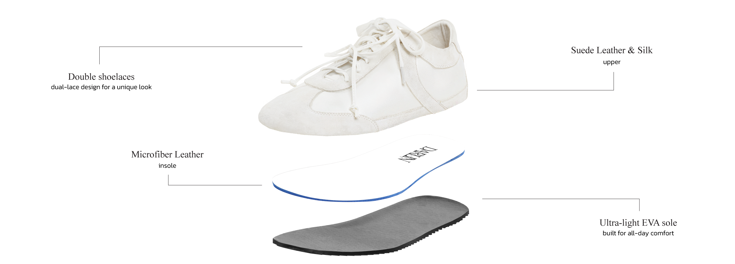 ให้การใส่รองเท้าไม่น่าเบื่ออีกต่อไป ด้วยลูกเล่นของเชือกรองเท้า 2 เส้นที่ไม่เหมือนกัน เพิ่มความมีมิติ และให้สาวๆแต่งตัวสนุกขึ้น